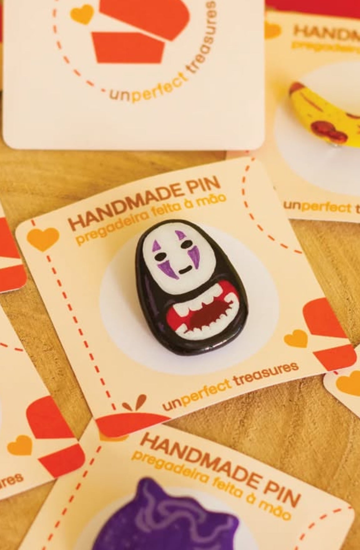 Feito com pasta de modelar que seca ao ar, tintas acrílicas e resina UV para uma acabamento brilhante e duradouro. Ideal para por no casaco ou mochila.