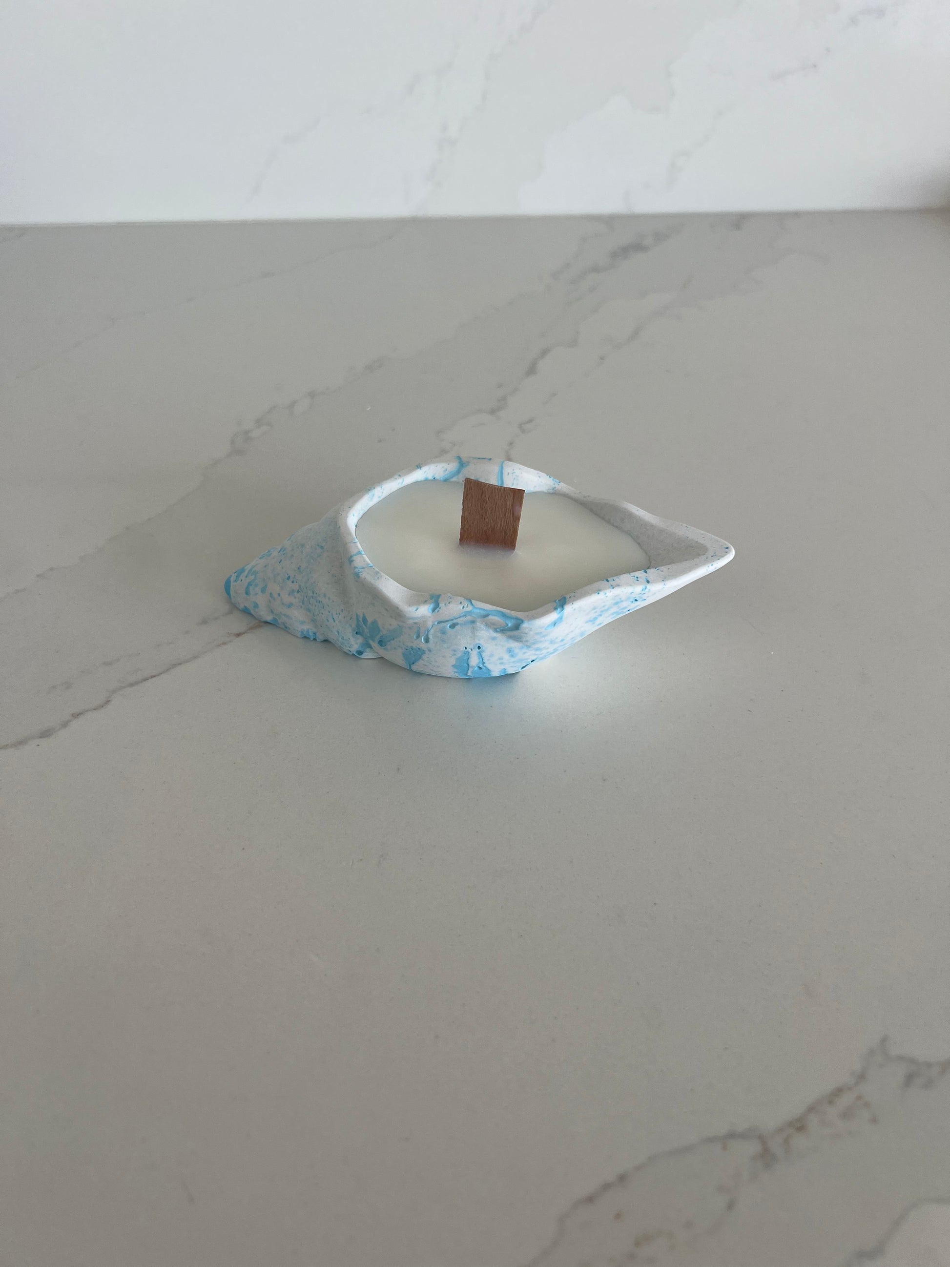 Vela feita com cera de soja e coco. Base em pó cerâmico. Fragrância à escolha.